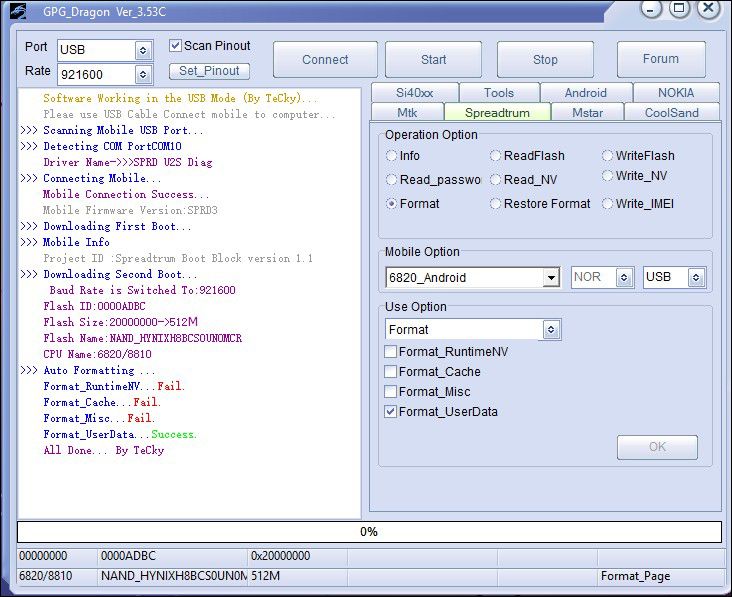 Also, the following operations are available on this tool. i.e., Read Firmware, Write Firmware, Format FS, Reset FRP, and Write IMEI.